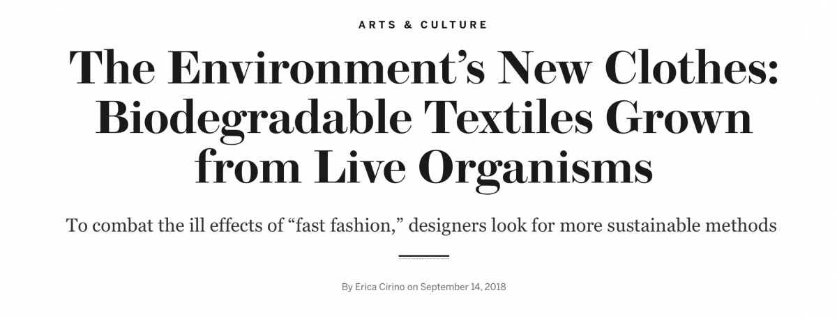 In order to combat the ill effects of "fast fashion" designers look for more suitable sustainable methods. It may be a small group of innovators but it continues to grow as they turn to the genius of nature in attempting to stop wastefulness and pollution out of fashion. They are using live organisms to grow pieces of biodegradable textiles, creating environmentally friendly materials in the laboratory. Researchers believe that some of tomorrows apparel could potentially be bioengineered - made from living bacteria, algea, yeast or animal cells. They would then eventually break down and be smartly thrown away.