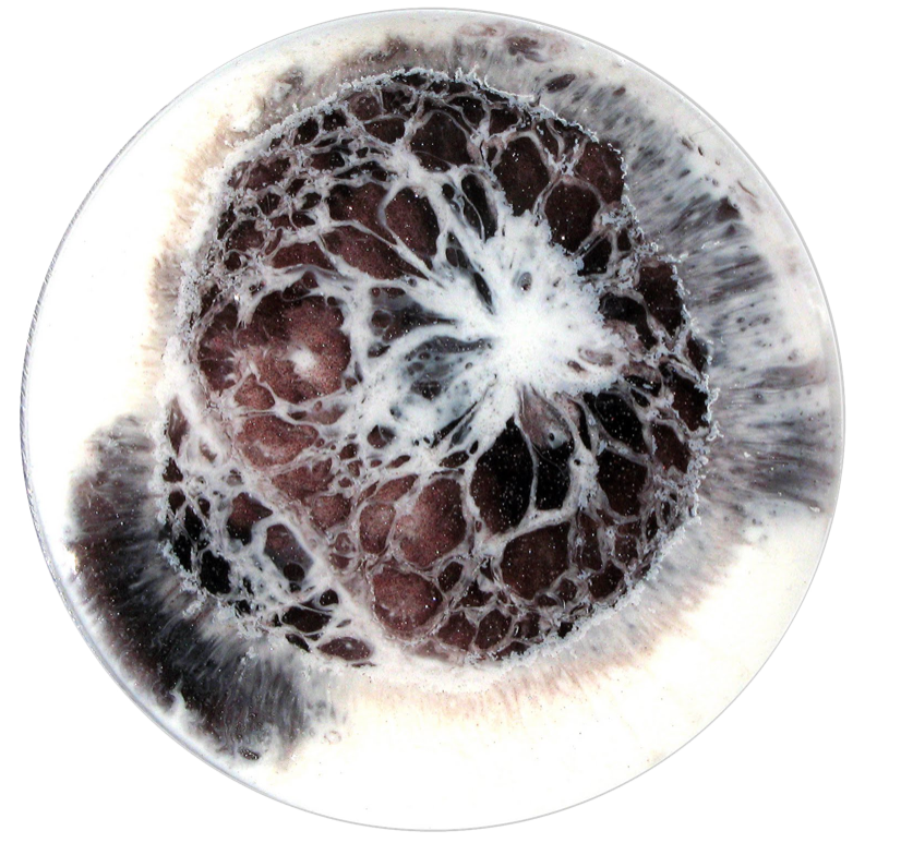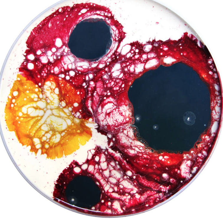 Another artist I was lucky enough to discover whilst digging around was American artist Klari Reis. She was born in 1977 and around the time she received her degree from her London Art School, Klari Reis was diagnosed with Corhns disease. After undergoing a battery of tests she developed an interest in these results especially in the ways her blood would react to different pharmaceuticals within Petri dishes. She began painting colourful representations of her test results using multiple mix medias and aluminium boards.
