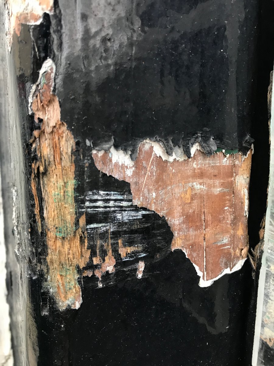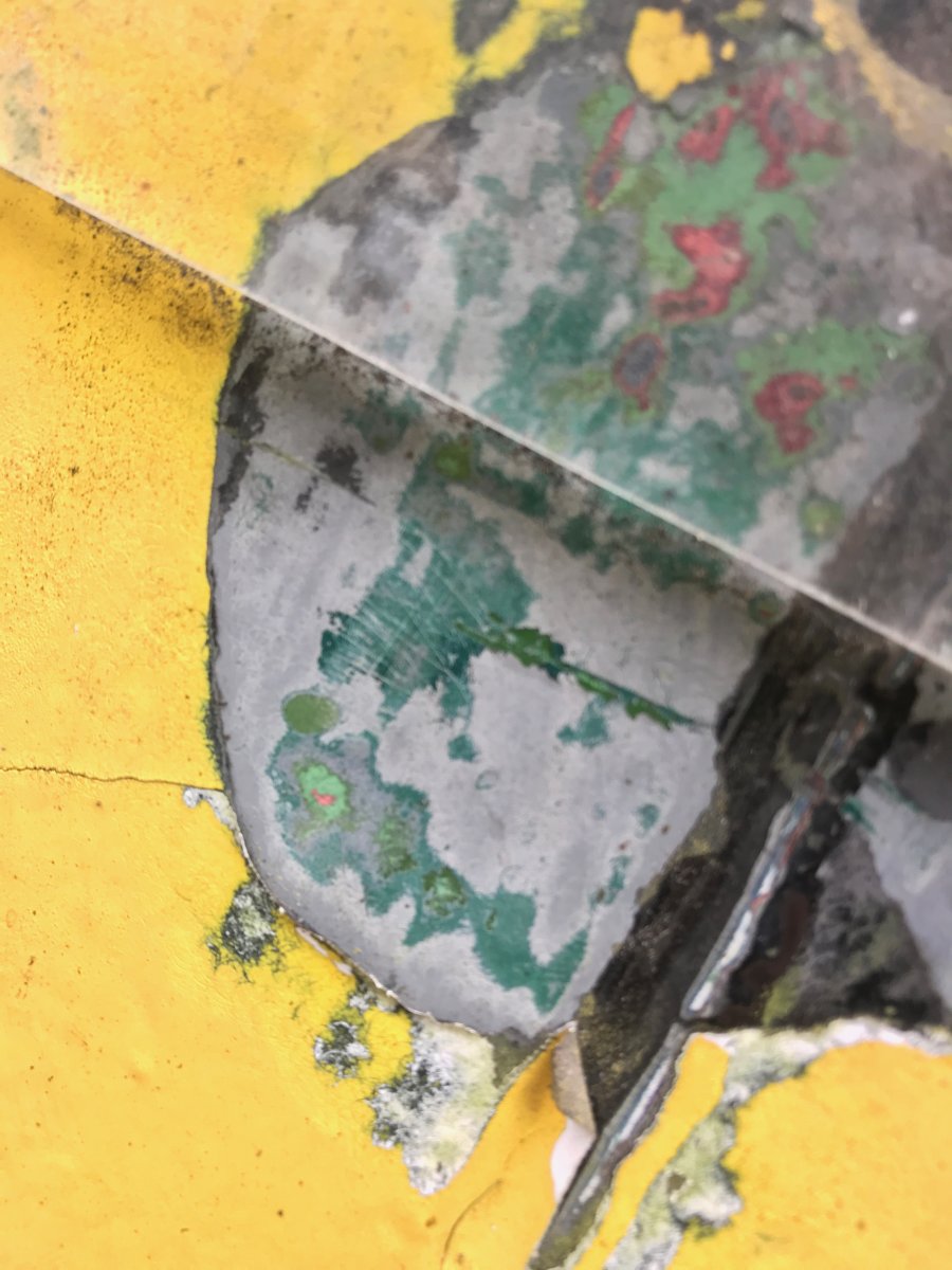 After discussing my found interest in "micro" surfaces and the Boyle family with my mum, she mentioned that she has researched a similar topic during her time on textiles BA and dug out her photo book of found surfaces of interest. Often corroded or rusted areas I found their natural textures really beautiful. She then recreated these textures with paint and other sourced materials onto clear surfaces.