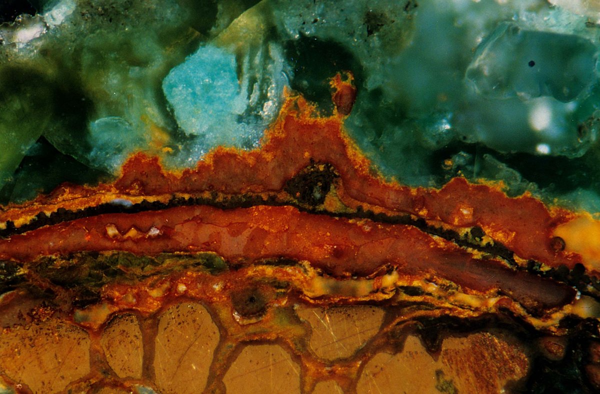 I finally found an image by William Marin Jr, which was submitted to the competition in 1984. It showed an antique bronze specimen from Thailand showing metal and corrosion interface which had been zoomed in by 400X. The natural textures where absolutely beautiful and for the first time in my project was less abstract and showed a closer resemblance to textiles and material.