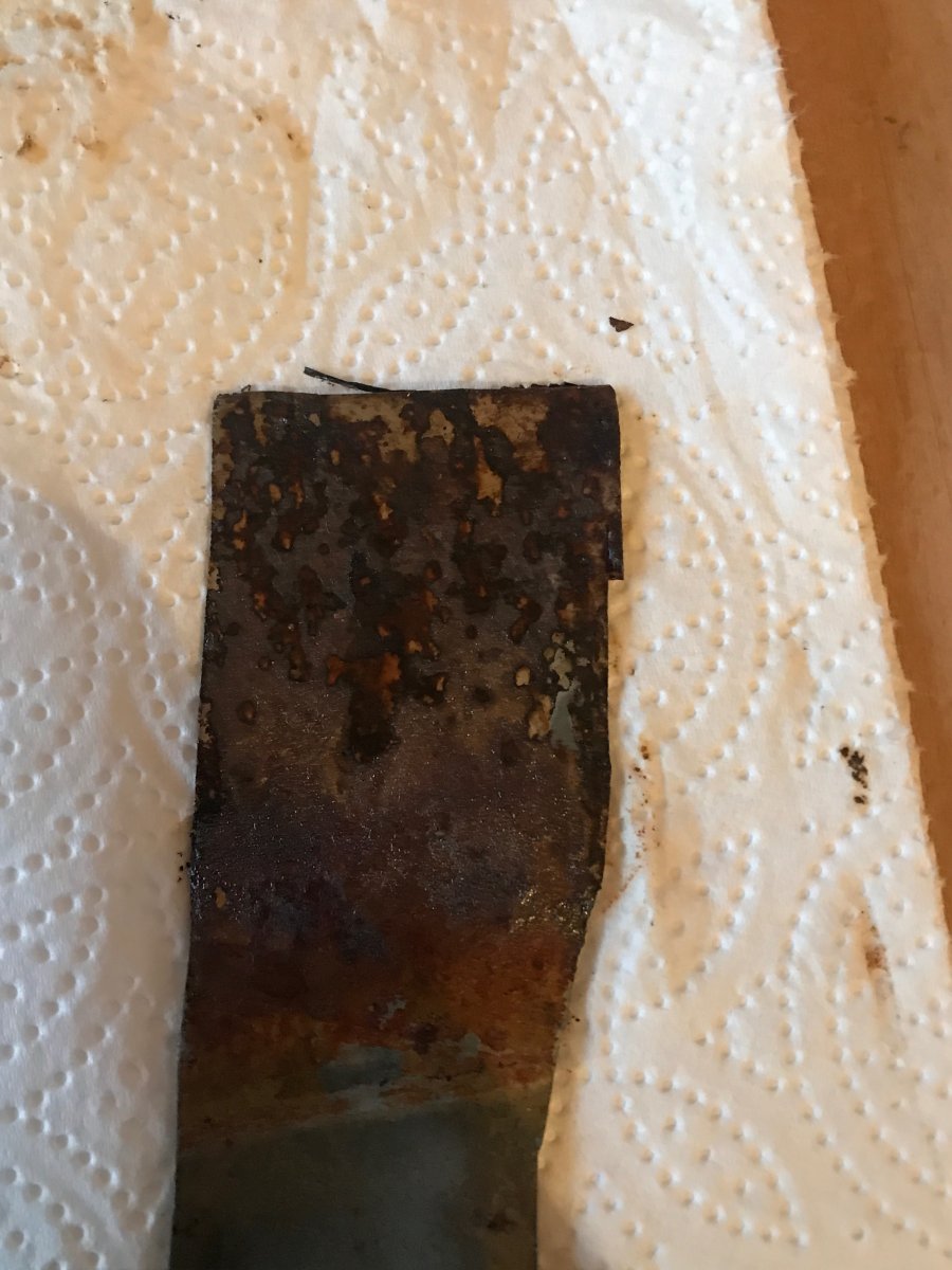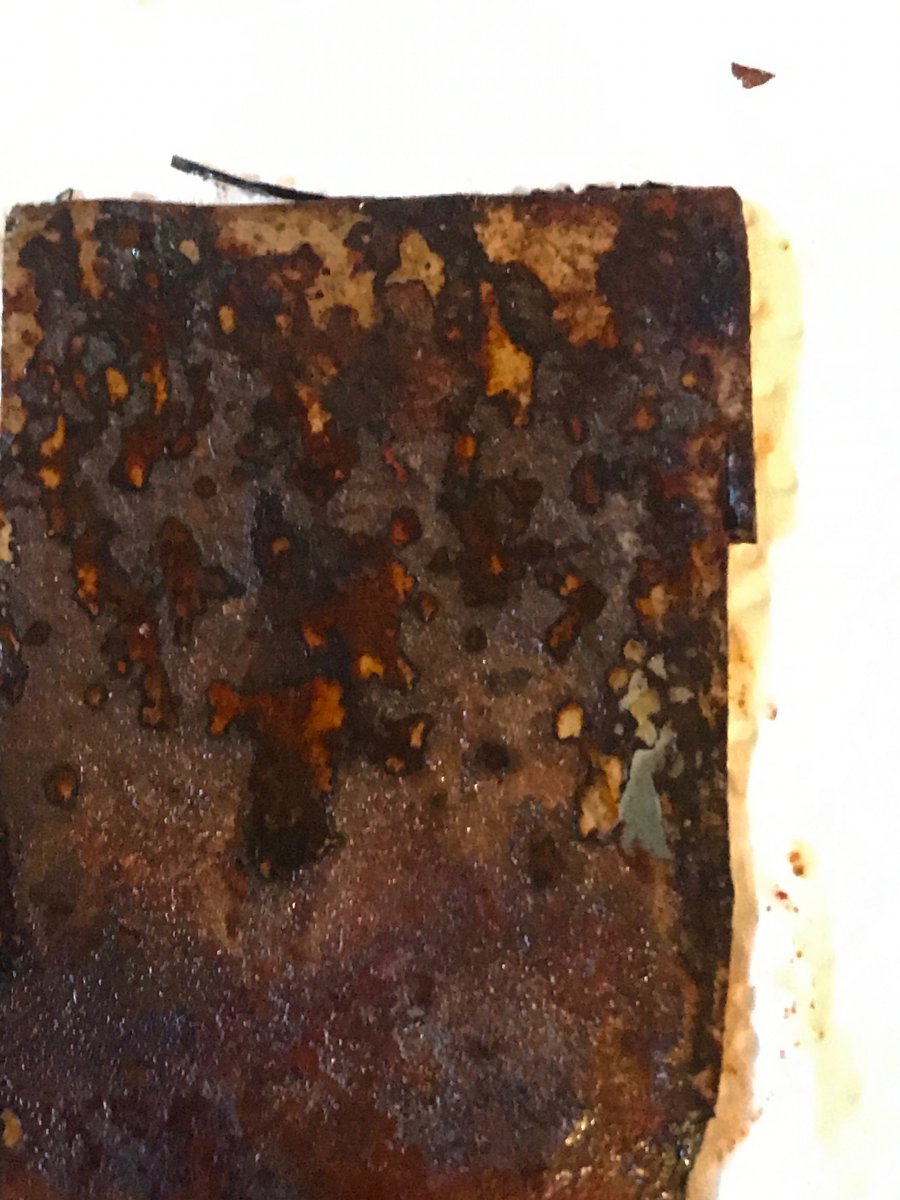 The first day, you could see a very tiny amount of rust particles beginning to appear on the metal and on the second it the clusters of rust started to become much clearer.